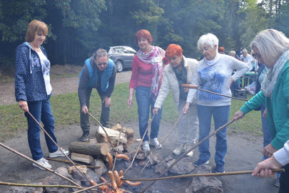 Na tym plenerowym spotkaniu integracyjnym, urządzonym na terenie udostępnionym nam przez Dyrekcję Lasów Państwowych nie tylko pogoda była ładna. Udało się po prostu wszystko. Wygodne zadaszone wiaty pomieściły wszystkich. Organizatorzy zapewnili napoje, trochę słodyczy oraz smaczne kiełbaski, które można było upiec na ognisku.