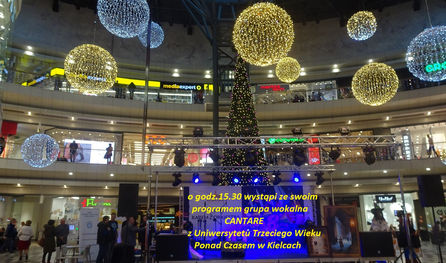W dniu 11.01.2020 o godz. 15:30 Grupa Wokalna „Cantare” z Kieleckiego Uniwersytetu Trzeciego Wieku „Ponad Czasem” wystąpiła na scenie zorganizowanej w Galerii „Korona” biorąc udział w 28 finale Wielkiej Orkiestry Świątecznej Pomocy. Zaśpiewali 10 utworów w tym kolędy, piosenki o miłości i o seniorach. GW „Cantare” wystąpiła w następującym składzie: (od lewej) Alicja, Urszula, Edward, Nina, Barbara, Grażyna, Joanna i Anna.